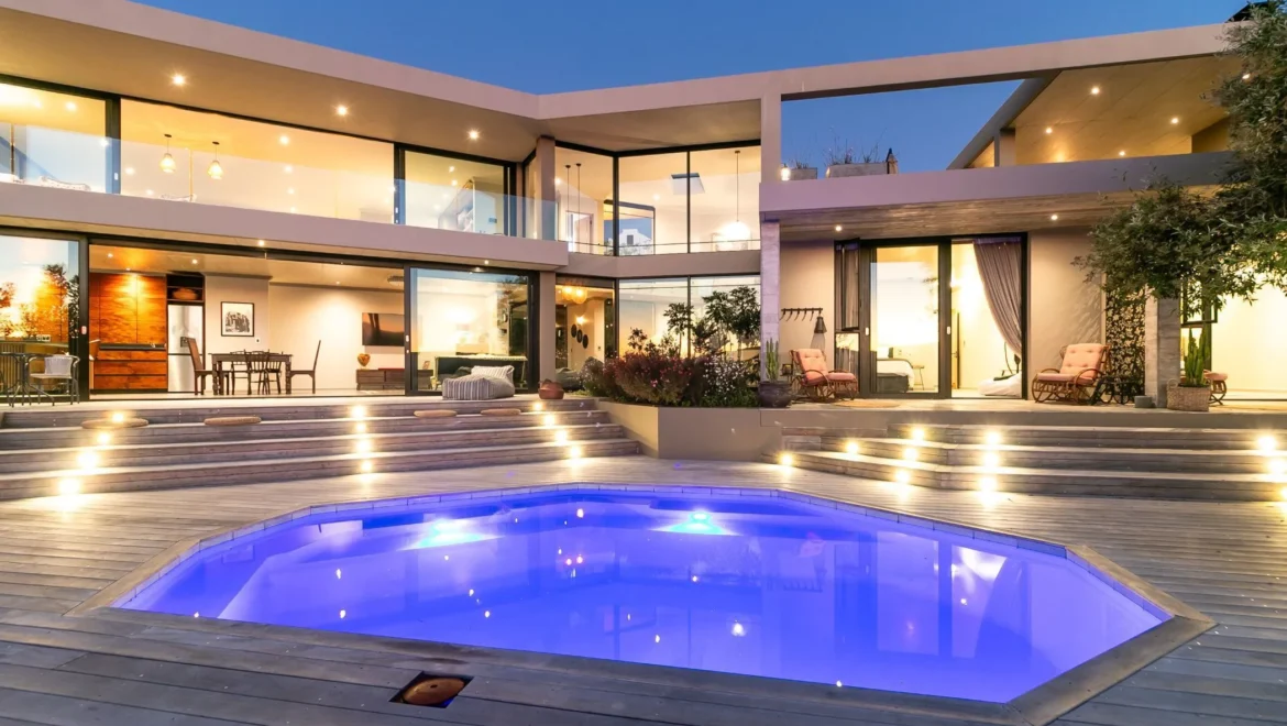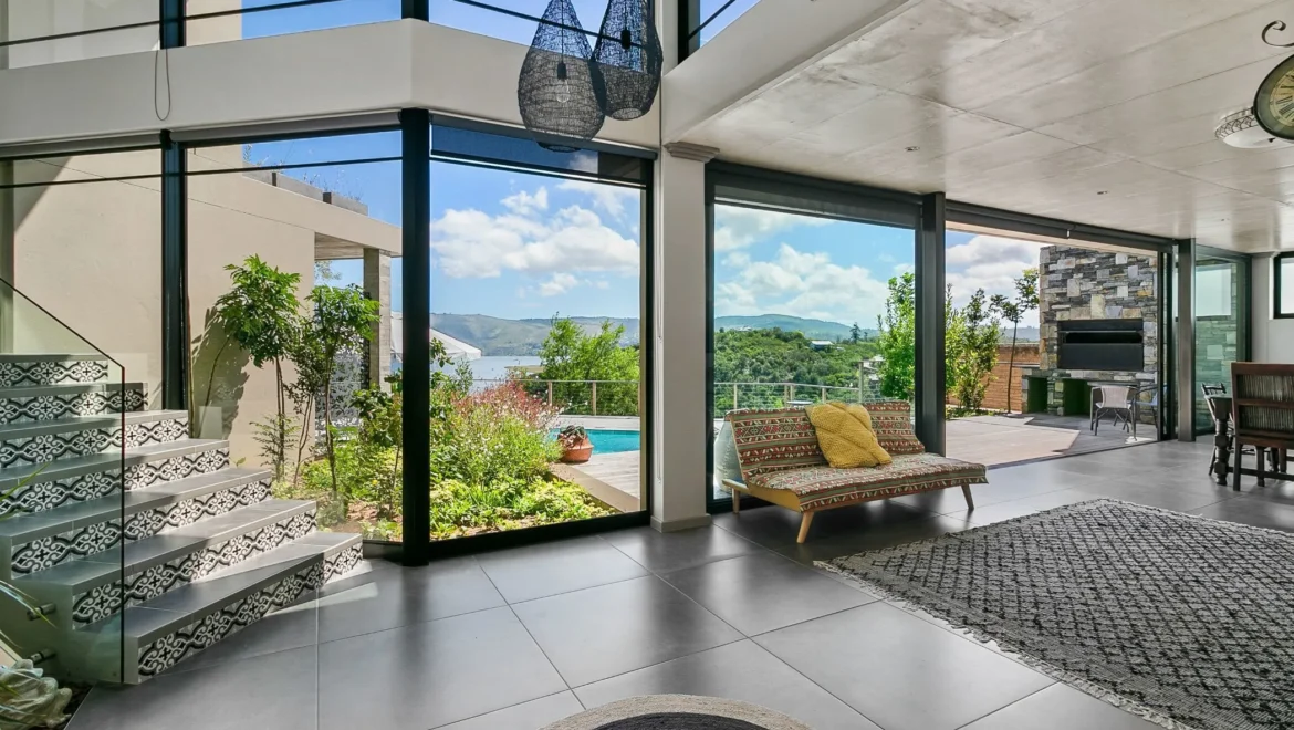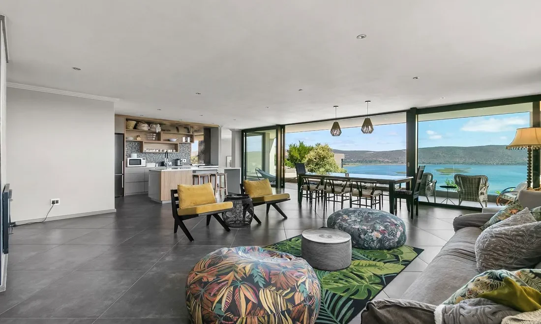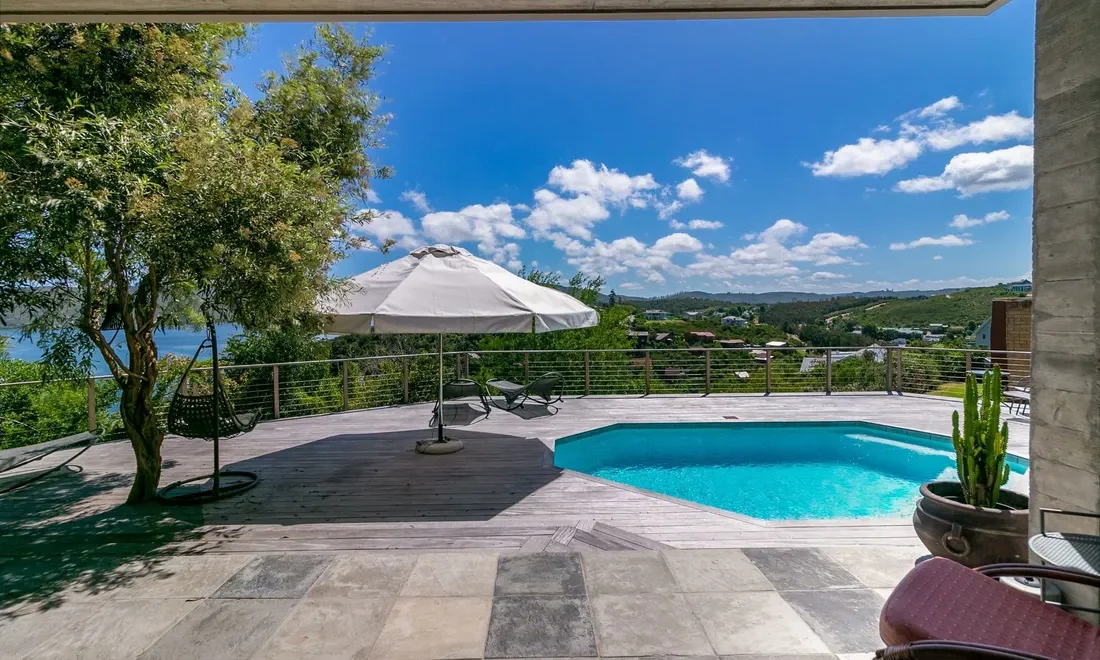 Experience the epitome of modern luxury with this stunning Moroccan-inspired villa, perfectly positioned with breathtaking views of the Knysna Lagoon. An exclusive design investment, combining glass, concrete, wood, and stone to blend seamlessly into its natural surroundings.