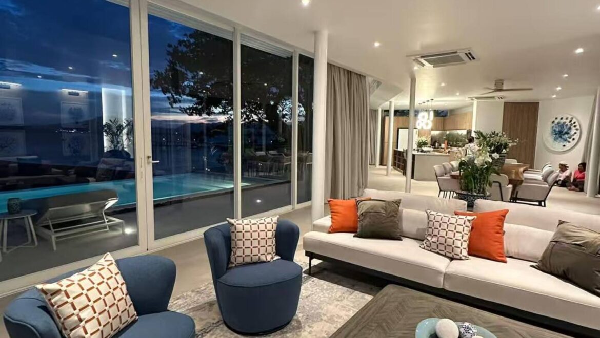 – Living room with television, hi-fi, three bedrooms with bathrooms, kitchen, one service bathroom with laundry