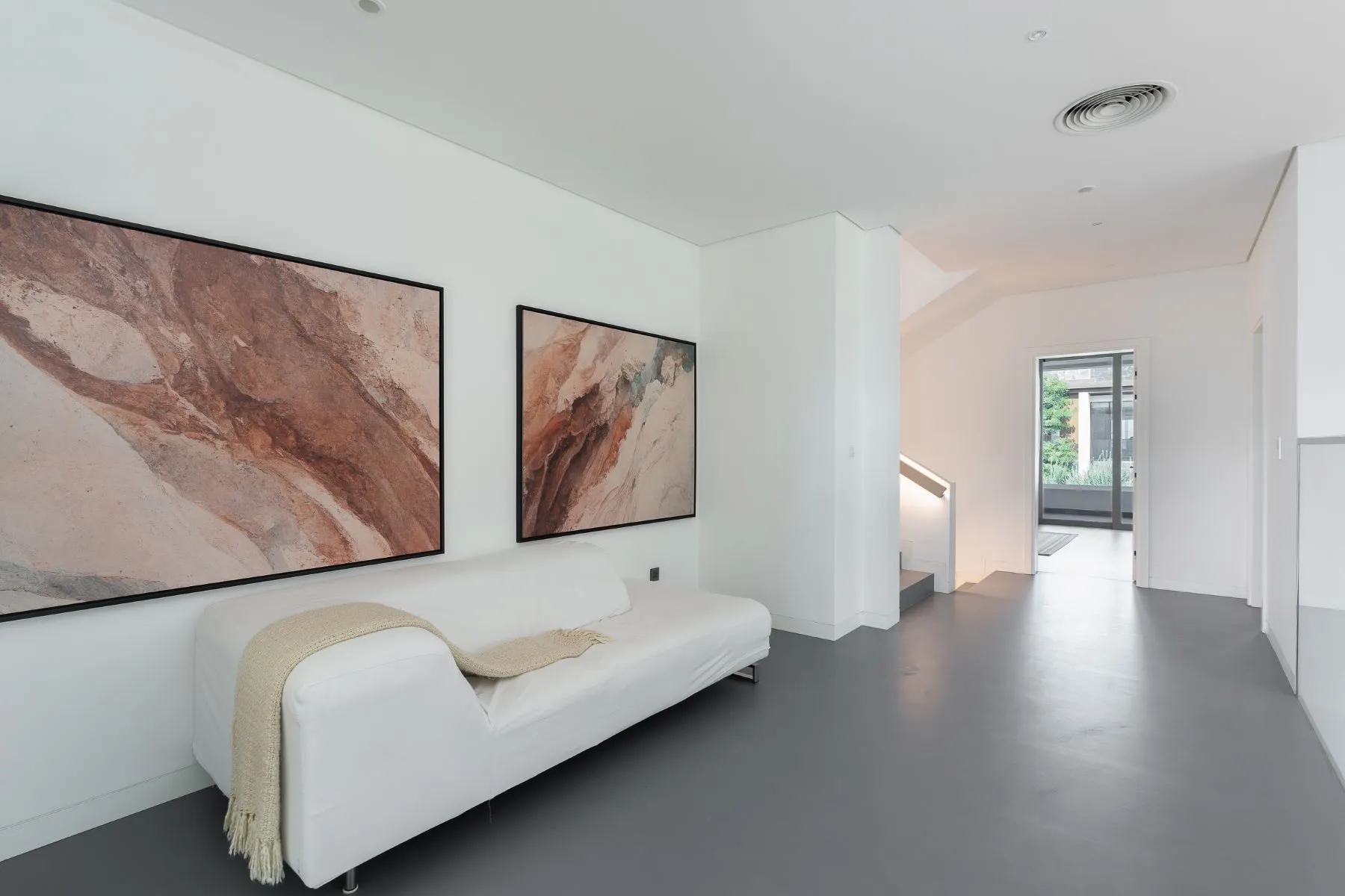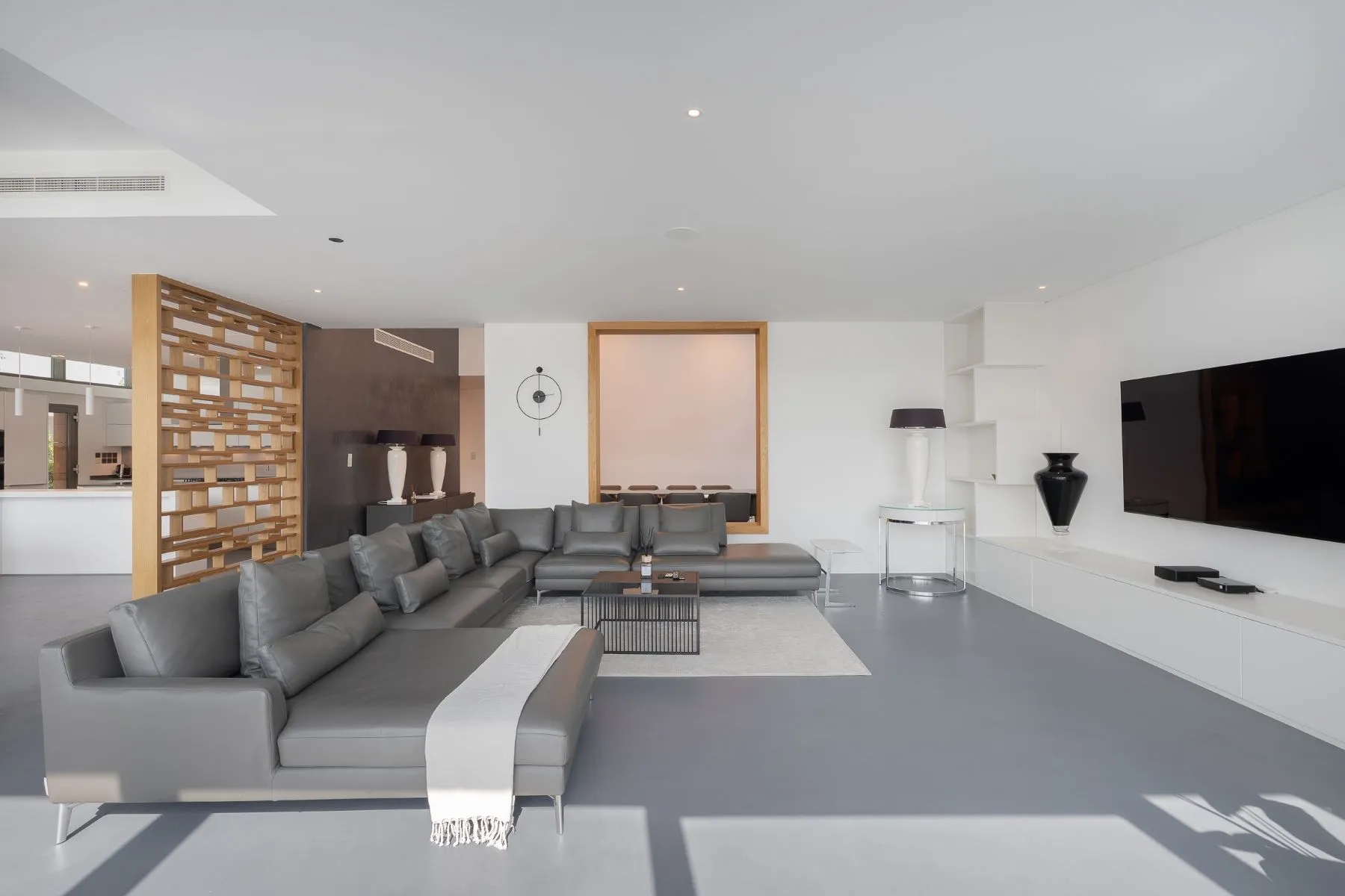 Interconnected living and dining areas are perfectly suited for both relaxed family living and entertaining, complemented by a fully equipped Miele kitchen. Designer Minotti furnishings further elevate the interiors with understated luxury and timeless appeal.